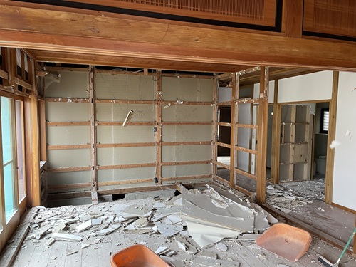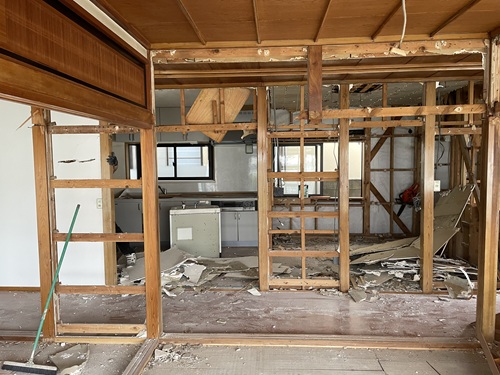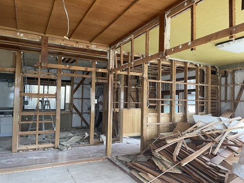 あっという間に、内部造作の間仕切壁や和室の床の間等々が姿を消して行く。