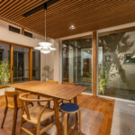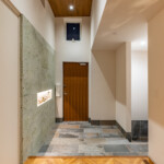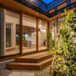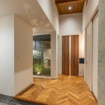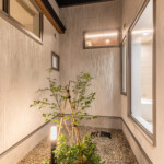 各庭は植栽、既存塀、建物上部の壁で外部から視線をさりげなく遮り、プライベートガーデンとして楽しめるよう工夫しています。庭を点在させることにより、ほとんどの居室が南側採光と自然通風を確保することができ、演出された庭とともに良好な住環境を供給することができます。