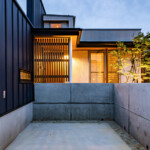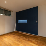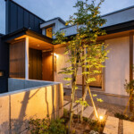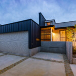 外観デザインは平屋の特徴や敷地と前面道路の段差を上手く有効活用しできるだけ全体建物高さを抑えた計画とするとともに、一部自然採光を確保する為の吹抜けをアクセントとした水平と垂直を強調した計画とします。
