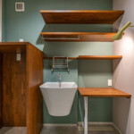 納戸、パントリー、家事室、キッチン、洗面脱衣室、浴室は西側にコンパクトにまとめ、家事動線を単純且つスムーズにし効率的に動けるよう配慮しています。