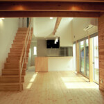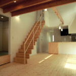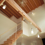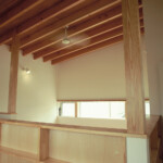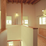 廊下という概念の空間を設定せず、居心地のいいLDKや居室とを、吹抜けで連結することにより、家族の存在が何処にいても感じられる空間構成となっている。