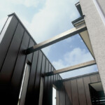 解体された旧家には、立派な門と塀が存在し、その門と塀の面影を新家にも形を変えて活かしたい…。そうした建築家としての思いが、前面道路側に設置された門構えの外壁である。この家に住む子供たちには、この門構えの外壁が今後語り継がれるに違いないと思っている。