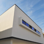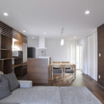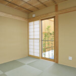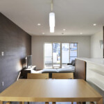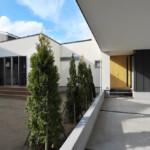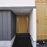 鶴岡市の新興住宅街に二世帯住宅として計画された距離をつなぐイエ。敷地南東と建物中心に2つの中庭を創り、全ての内部空間を2つの庭に面して配置。敷地外部には閉ざし、敷地内部には開いた空間構成としている。