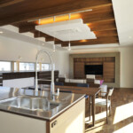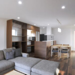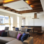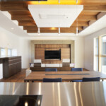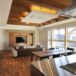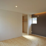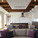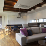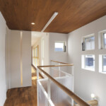 親世帯の居住ゾーンは1階南側、子世帯の居住ゾーンは2階北側にまとめることにより、平面的・断面的にも対峙した位置に居住ゾーンを配置した。共用ゾーンは1階北側に配置し、上階の子世帯の音も直接親世帯の居住ゾーンに響かず、お互い快適な住環境を確立することが可能となった。