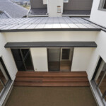 2つの中庭は、3つの居住ゾーン(親世帯、子世帯、共用)に気持ちのいい自然採光と通風をもたらし、お互いの存在を付かず離れずの距離で把握できる空間となっている。これらの中庭は、世代間の距離、内部と外部の距離、内部と内部の距離、視線間の距離、音の距離等々、この二世帯住宅の全ての距離を心地よくつなぐバッファーゾーン(緩衝地帯)となっている。