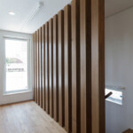 築100年以上の既存本堂のデザインモチーフ(木板、漆喰の壁、庇・軒のデザイン)を踏襲すると共に、そのデザインを現代風にアレンジし外観をまとめた。